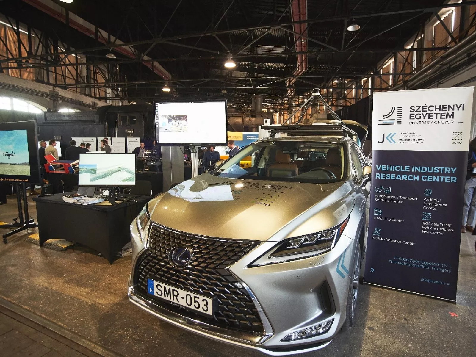 A Széchenyi Egyetemet képviselő kutatók a kiállításon bemutattak egy tesztjárművet, amelyet fokozatosan alakítanak át és vérteznek fel különféle önvezető funkciókkal. Az egyetem Járműipari Kutatóközpontjának standjánál bemutatták valós idejű, mesterséges intelligencia alapú környezetérzékelő rendszerüket is. Ezen megoldás az autóra integrált kamerán keresztül észleli a közúti közlekedésben részt vevő járműveket, járókelőket. A látogatók egy képernyőn keresztül követhették, hogy mit lát a rendszer, azaz milyen objektumokat ismer fel. A bemutatott járművön található Lidar szenzor segítségével a rendszer a kamera alapján felismert alakzatok valós térbeli helyzetét is meghatározza. Ezek a funkciók fontos alapját képzik egy önvezető rendszer megvalósításának. Az egyetemet képviselő kutatók kiemelték, hogy munkájuk során fontos szempont, hogy a megoldásaik ne csak a tudományos élet elvárásainak feleljenek meg, hanem valós gyakorlati alkalmazásuk során is megbízhatóan működjenek.