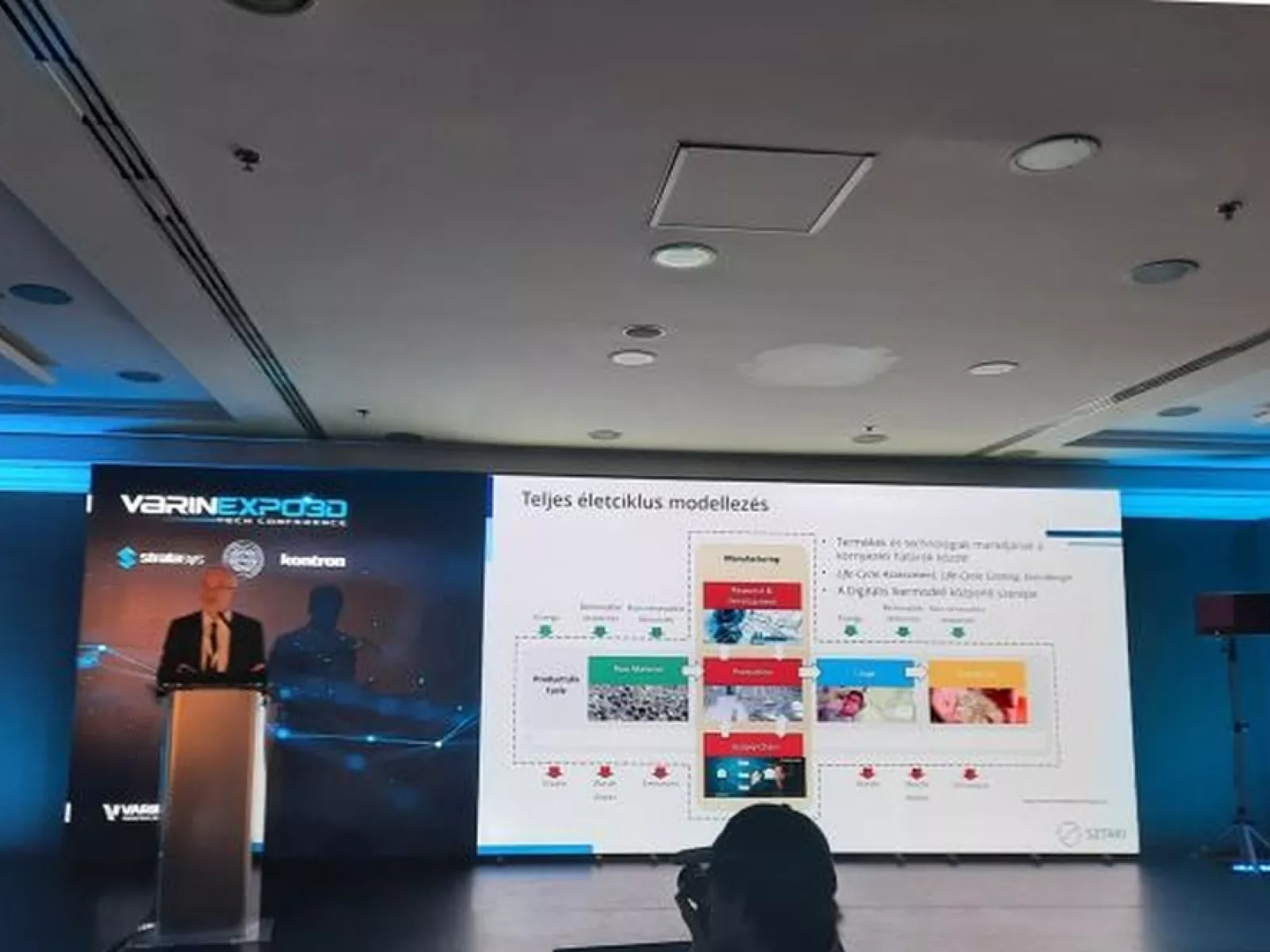 Váncza József, az Autonóm Rendszerek Nemzeti Laboratórium (ARNL) vezető kutatója, a HUN-REN SZTAKI Mérnöki és Üzleti Intelligencia Kutatólaboratóriumának vezetője a digitális iker technológia ipari alkalmazásáról tartott telt házas előadást az additív gyártás (avagy 3D-nyomtatás) huszonöt éves magyar sikertörténetéről szóló gálakonferencián Budapesten, 2023. szeptember 21-én.