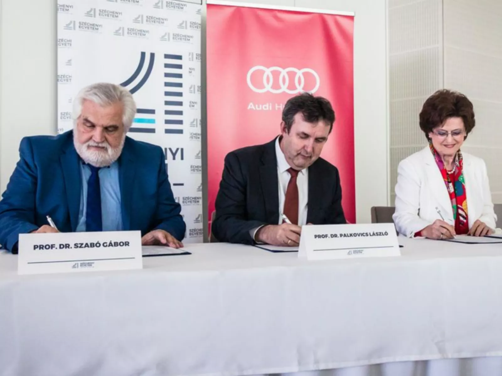 Széchenyi István University, with the support of the Ministry of Innovation and Technology, has entered into a forward-looking cooperation with Audi Hungaria Zrt. and the University of Szeged. The joint innovation projects will focus on research and validation of alternative fuels, exploring the industrial potential of hydrogen and reducing carbon dioxide emissions.
